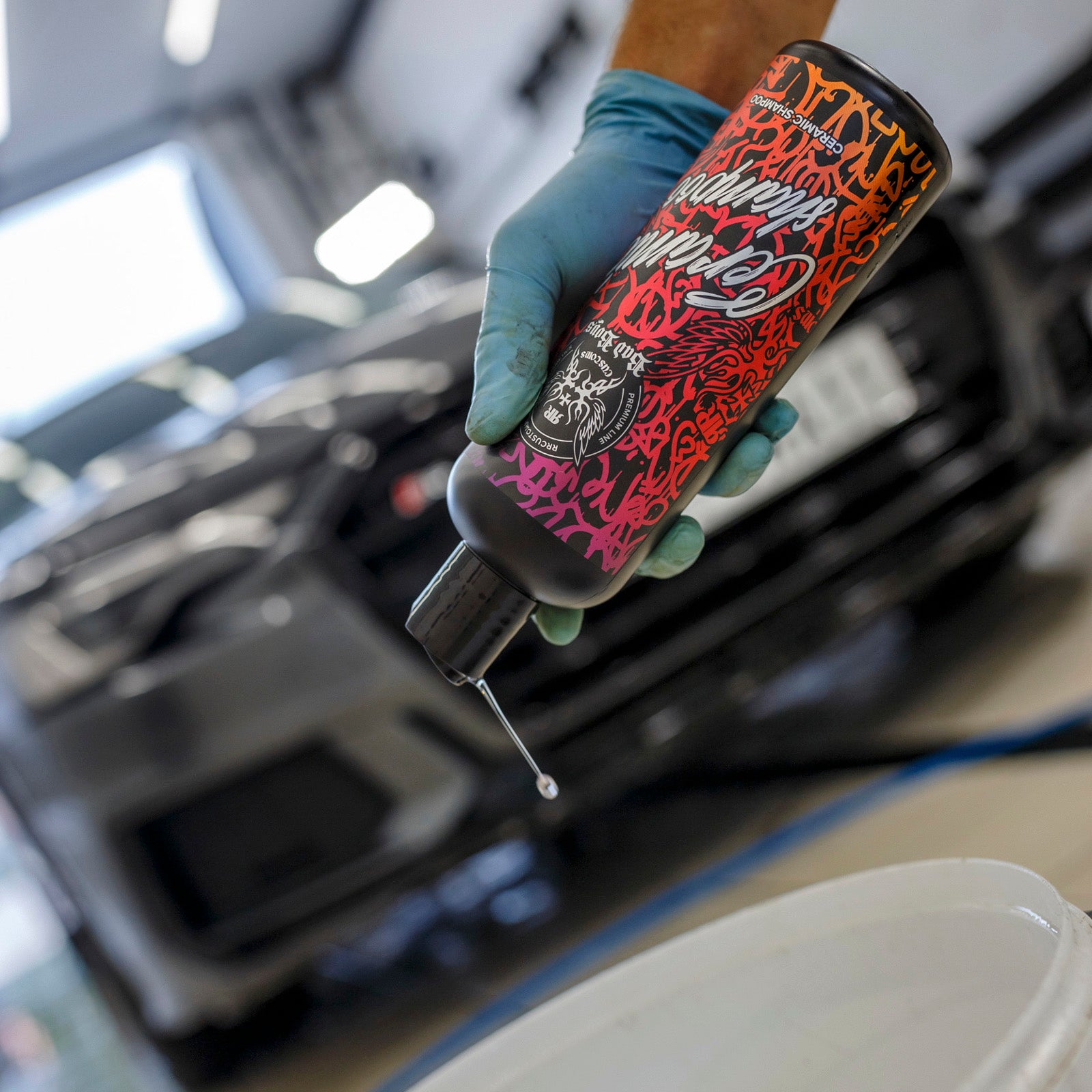 Pour un effet perlant encore plus prononcé, appliquez une petite quantité de shampoing céramique directement sur le gant de lavage avant de rincer, puis répartissez-le sur l'extérieur du véhicule.