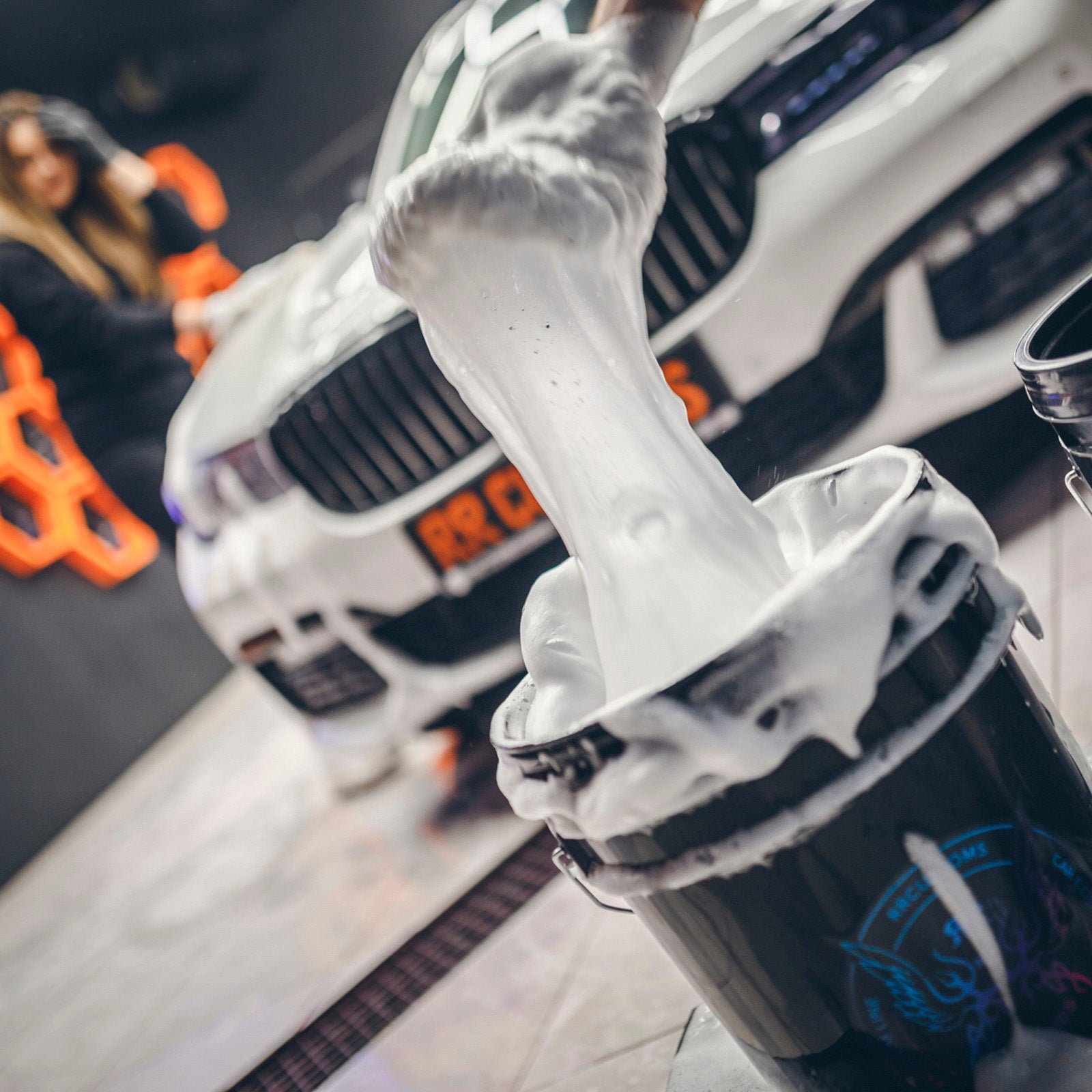 - L'effet mousse onctueuse du shampoing ne peut être obtenu qu'en le mélangeant à de l'eau à l'aide d'un nettoyeur haute pression (versez le shampoing dans un seau, puis ajoutez l'eau sous pression).